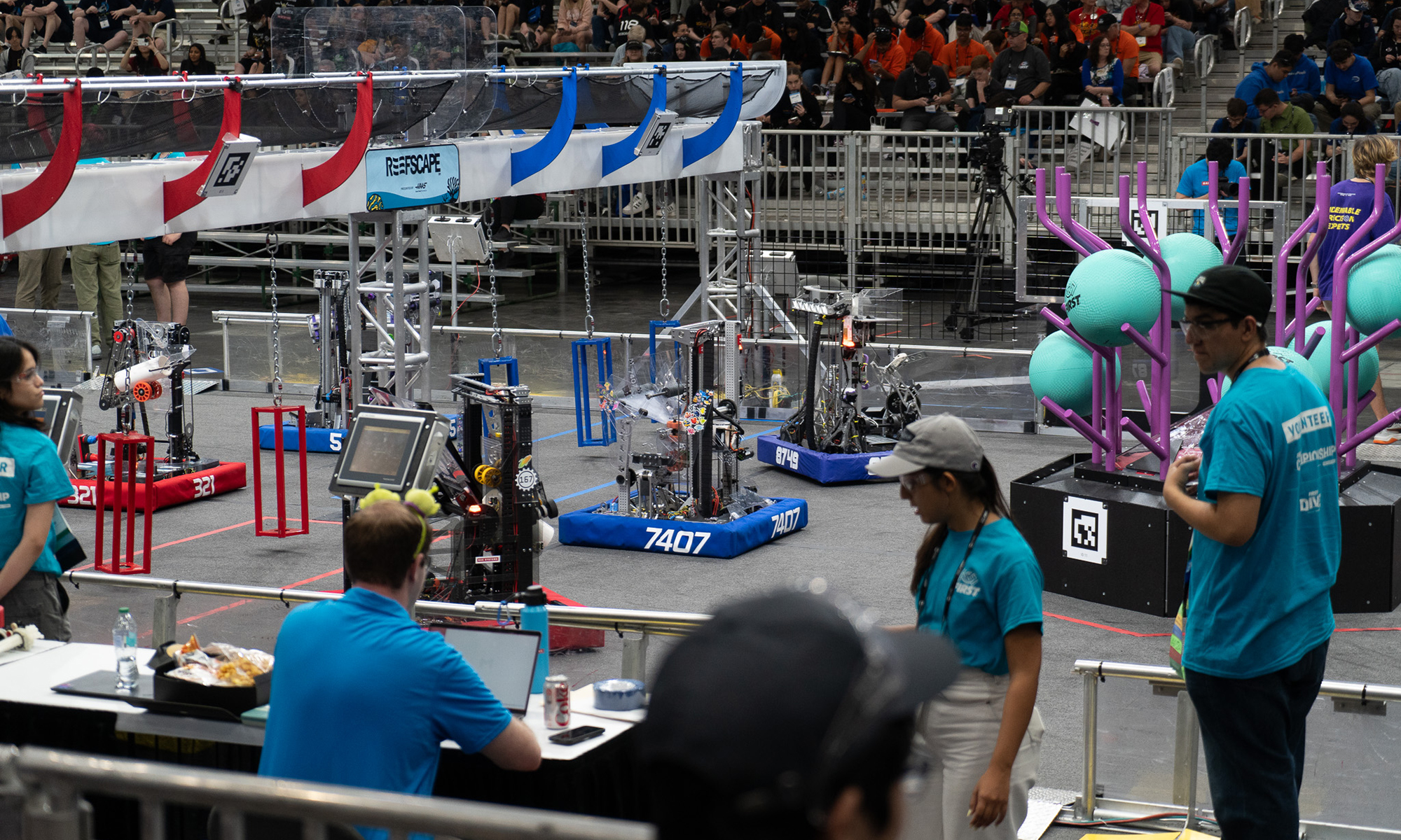 Since the 2019 season, the Choate Robotics Team has competed as Team 7407 in the FIRST Robotics Competition (FRC), an international competition that “combines the excitement of sport with the rigors of science and technology.” Students produce a game-playing robot to compete in alliance with other teams.